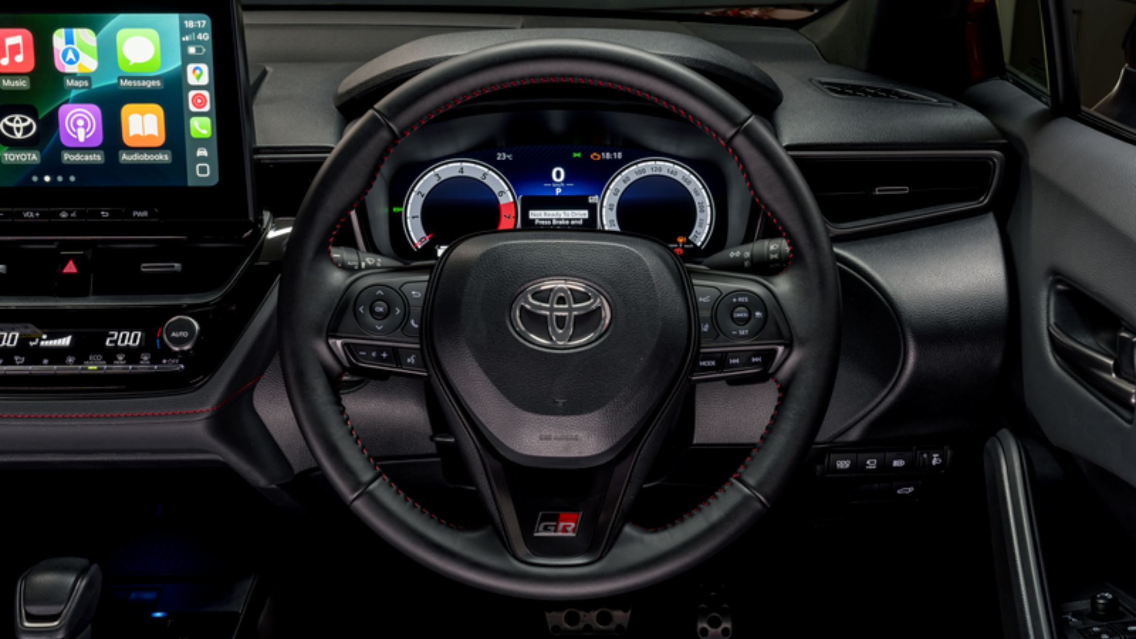 On the exterior, the Gazoo Racing inspiration stands out with a host of GR badges, a newly-designed geometric grille, roof rails, and new sporty 18″ alloy wheels, with your choice of Glacier White, Arizona Red, or Chromium Silver bi-tone exterior colour options. When the lights go out and your lights go on, you will also notice that the GR-Sport is equipped with a new headlight design with an inner lens to create uniformity and precision, along with a sequential turn signal.